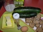 Pour 24 madeleines, il faut prévoir 2 petites courgettes du panier O'papilles, 50g de beurre, 125g de sucre, 1 œuf, 50g de cerneaux de noix, 125g de farine, une demi cuillère à café de noix de muscade, un quart de cuillère à café de cannelle, de la levure et du sel.
