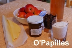 Il faut prévoir 6 pommes, 1 verre de noix de coco râpée, 1 verre de raisins secs, 3 cuillères à soupe de gelée de pommes, 1 bouteille de jus de pomme, 1 pâte brisée, 2 sachets de sucre vanillé.