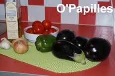 Il faut prévoir 4 aubergines, 4 tomates, 1 poivron, 2 oignons, 4 gousses d'ail, 4 cuillères à soupe d'huile de tournesol, sel et poivre.