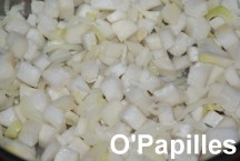 Faire revenir l'oignon et l'ail dans l'huile de tournesol, ajouter le radis noir coupé en dés et faire cuire à feu assez vif durant 5mn. Ajouter les morceaux de blanc de poulet et poursuivre la cuisson durant 10mn sans cesser de tourner.